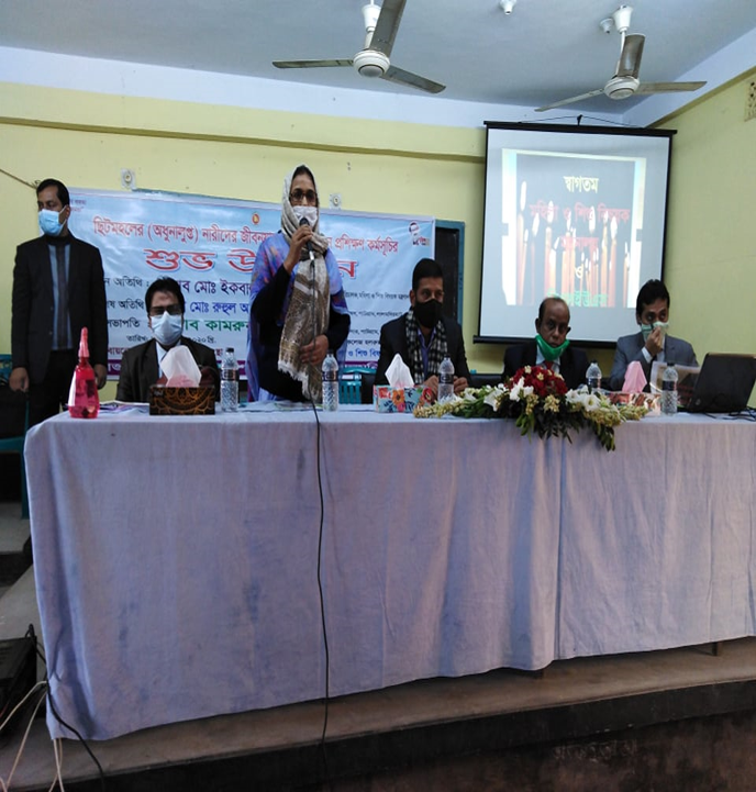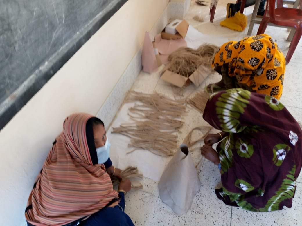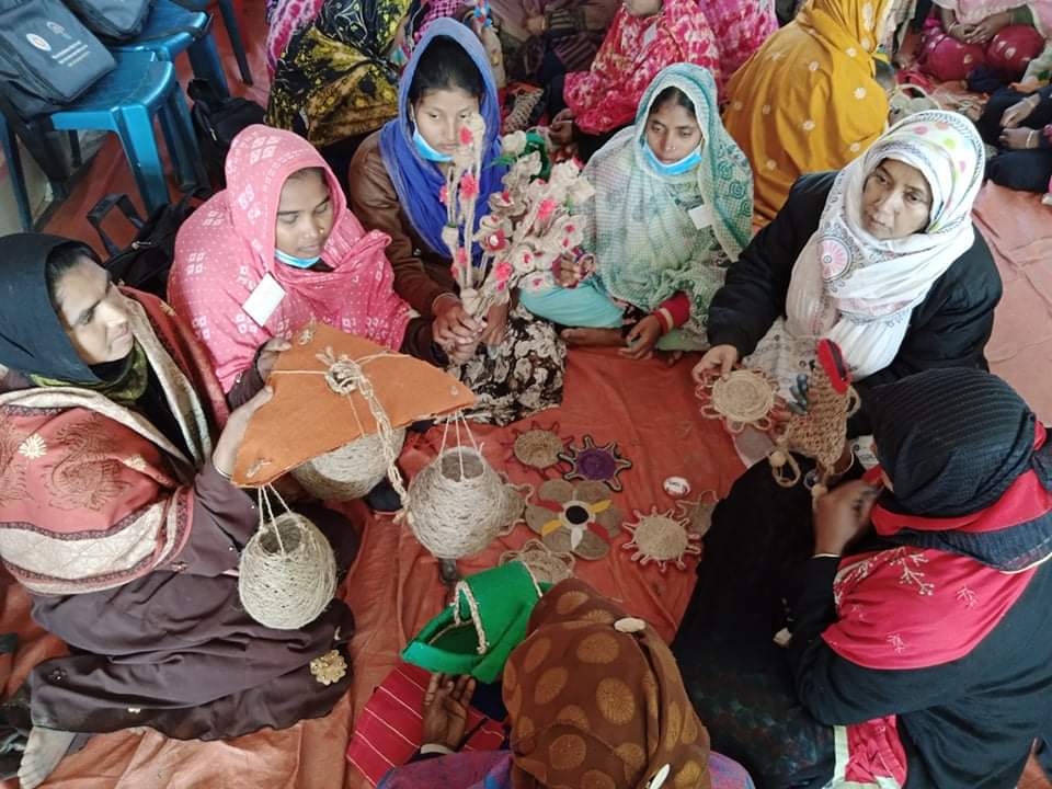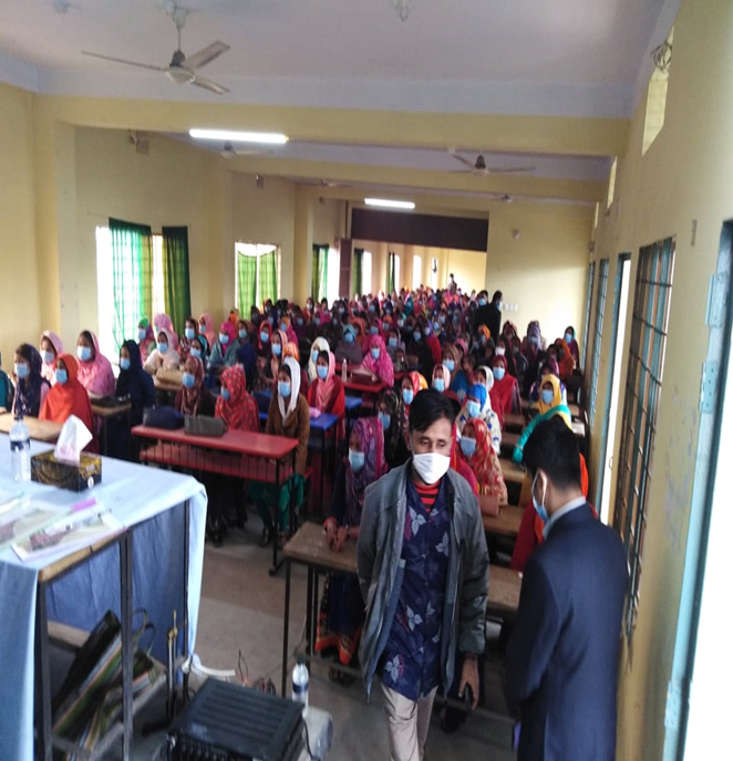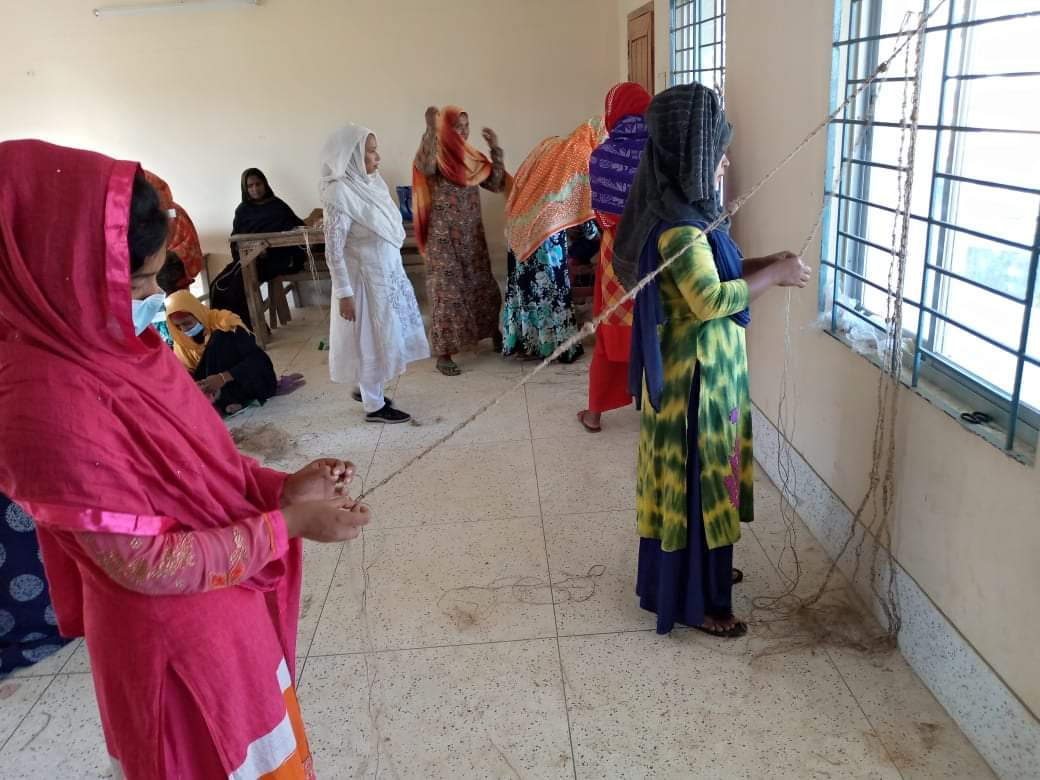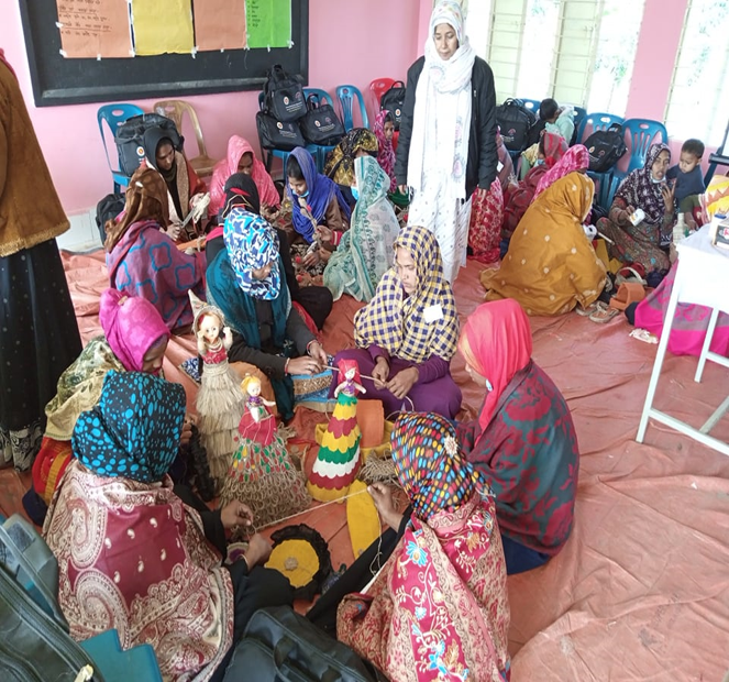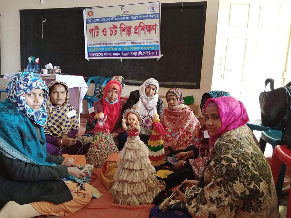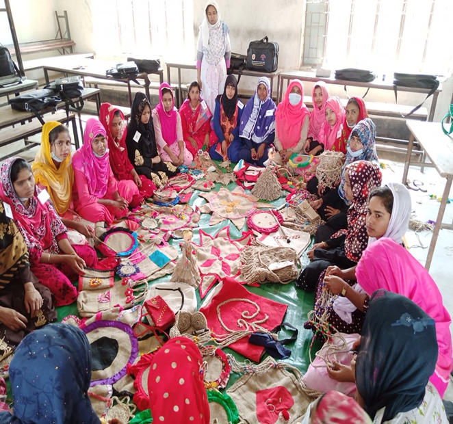 ছিটমহলের নারীদের জীবন যাত্রার মান উন্নয়ন প্রশিক্ষণ কর্মসূচী কর্মসূচিতে উপস্থিত আছেন প্রশিক্ষণার্থীরা নকশী খাতার উপরে যারা সেলাই প্রশিক্ষণ নিচ্ছেন বাস্তবায়নে ভোলা সমাজ উন্নয়ন সংস্থা ।